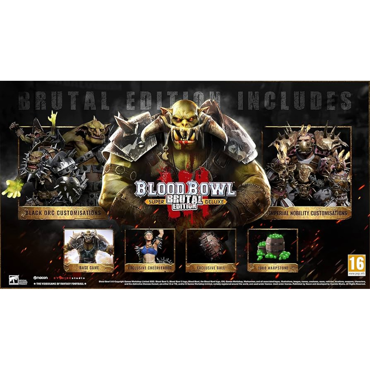 A Blood Bowl 3 - Brutal Edition egy sötét és kegyetlen világba kalauzol el, ahol a hősies tetteket a véres csaták és a stratégiai gondolkodás határozzák meg. Itt a bárdok és varázslók helyett a páncélba öltözött harcosok lépnek a pályára, hogy a hatalmas arénákban a vérüket ontva bizonyítsák képességeiket.